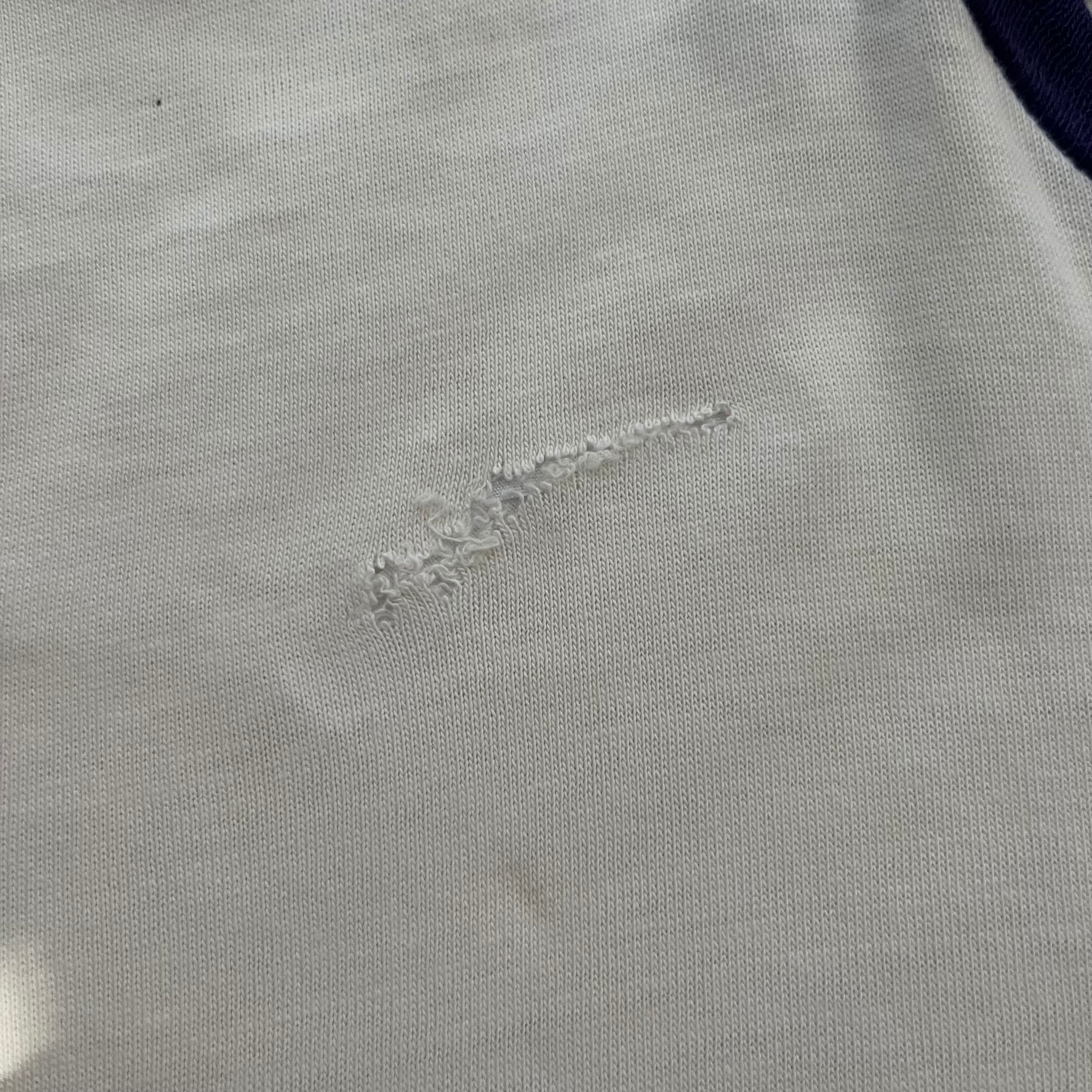 各所小穴破れございまして、つまんでリペアされておりましたが、着用時肌に当たる為補修用テープで止めております