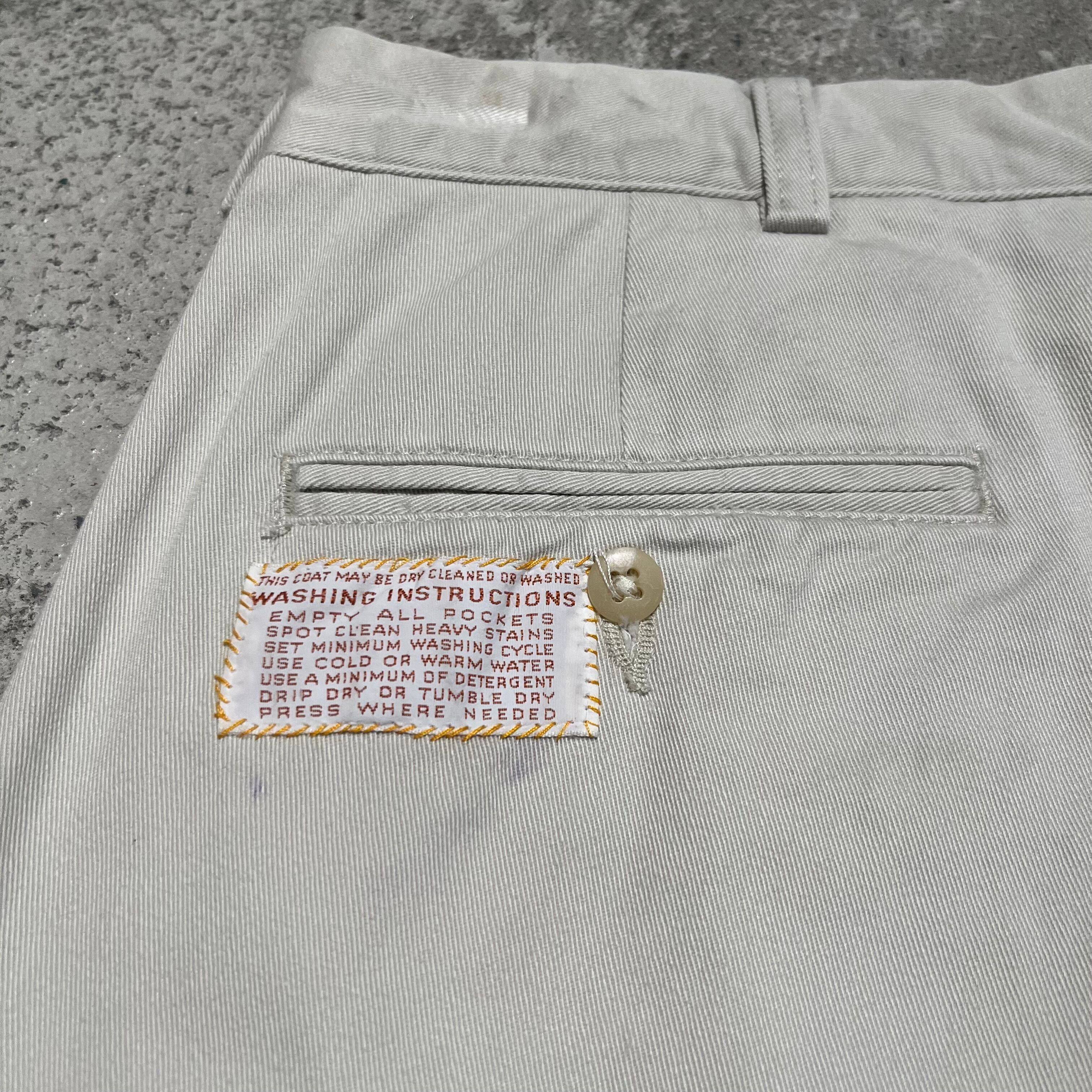 左後ろポケットにはケアタグが手縫いで付けられております(インク滲みを隠すためかと)